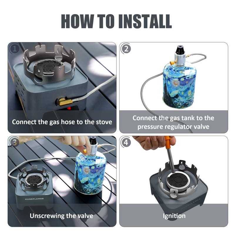 - Fit for Various Environments: No matter where your outdoor journey takes you, this butane stove is ready for the challenge. It features a damper adjustment device that allows you to fine-tune the flame, making it suitable for use in plateau and cold environments. Rest assured, this stove will perform optimally, even in the harshest outdoor conditions.