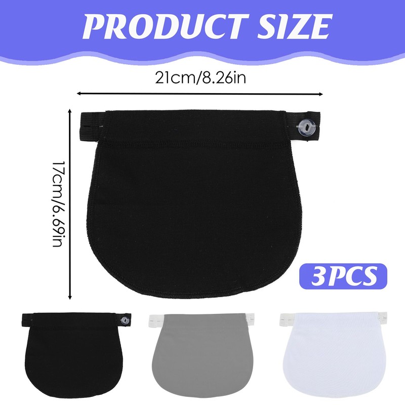 - COMFORT AND FLEXIBILITY Enjoy ultimate comfort with our set of 3 pregnancy pants extenders. They are flexible and adaptable to your needs during pregnancy. With a size of 22 x 20 x 16 cm and adjustable buttons and holes, they easily adapt to your existing wardrobe.