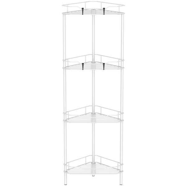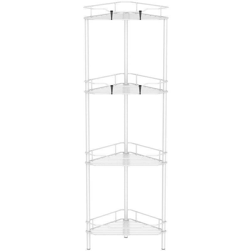 HuggieGems 4 Tier Floor Standing Corner Shower Caddy Organizer Shelf with Hooks, Bathroom Shelves Stand Rack, White