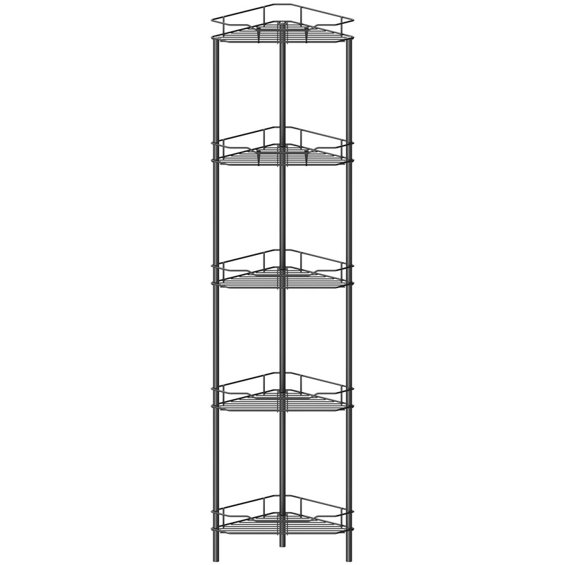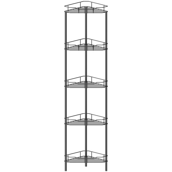 HuggieGems 5 Tier Floor Standing Corner Shower Caddy Organizer Shelf with Hooks, Bathroom Shelves Stand Rack, Black
