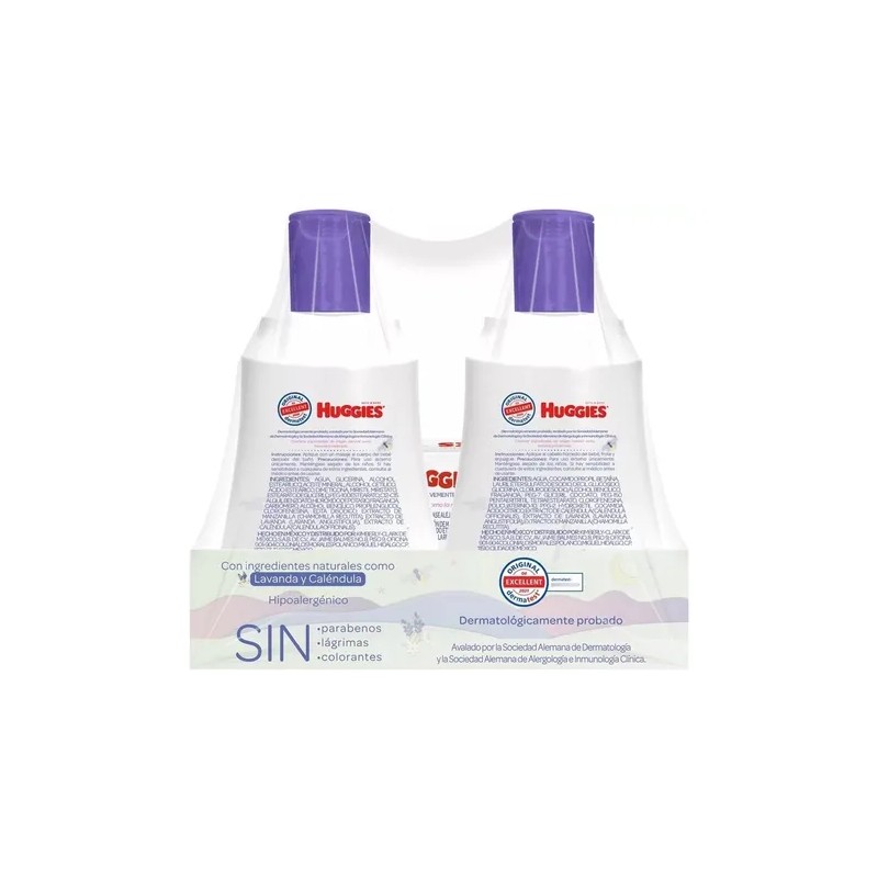 Descripción Set Huggies Sueños de Lavanda contiene Shampoo Huggies Sueños de Lavanda 250 ml + Crema Huggies Sueños de Lavanda 250ml+ Jabon en barra 80 g Ingredientes de origen natural Con lavanda, caléndula y manzanilla. Para todo tipo de cabello Fórmula hipoalergénica Libre de parabenos y químicos dañinos que podrían afectarlo. Dermatológicamente probado.