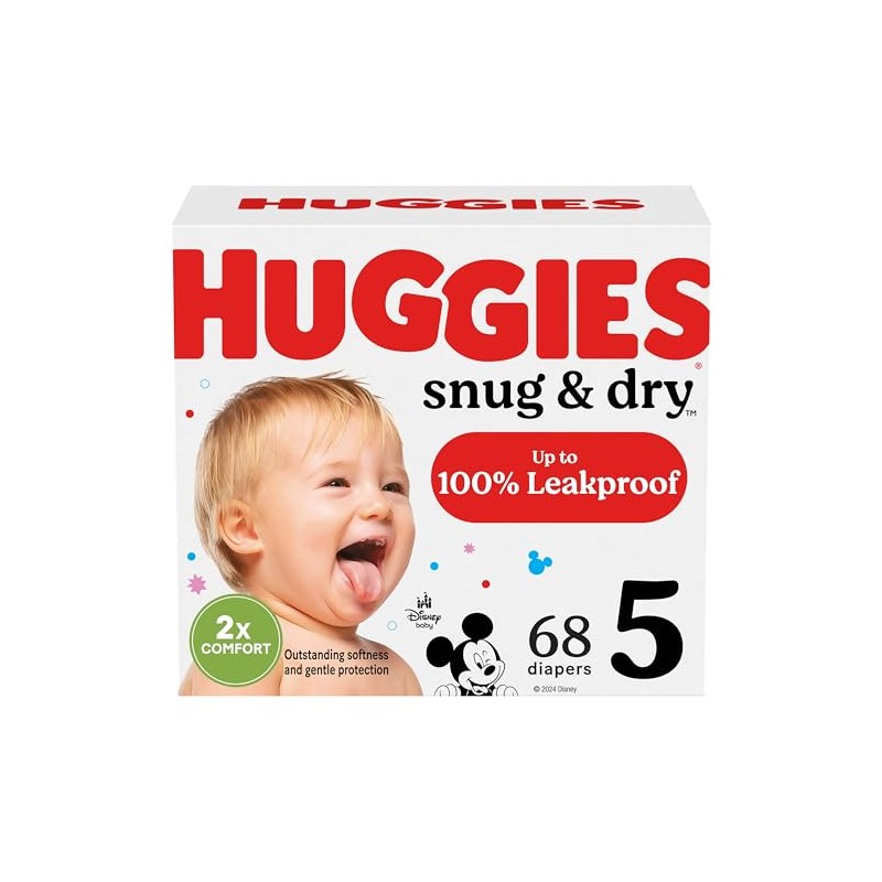 HUGGIES Huggies Size 5 Diapers, Snug & Dry Baby Diapers, Size 5 (27+ lbs), 68 Count, Packaging May Vary