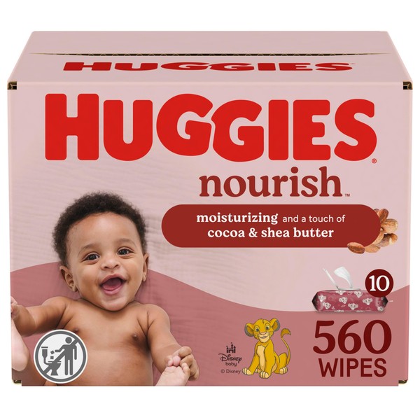 Huggies Nourish Scented Baby Wipes, 10 Push Button Packs (560 Wipes Total)