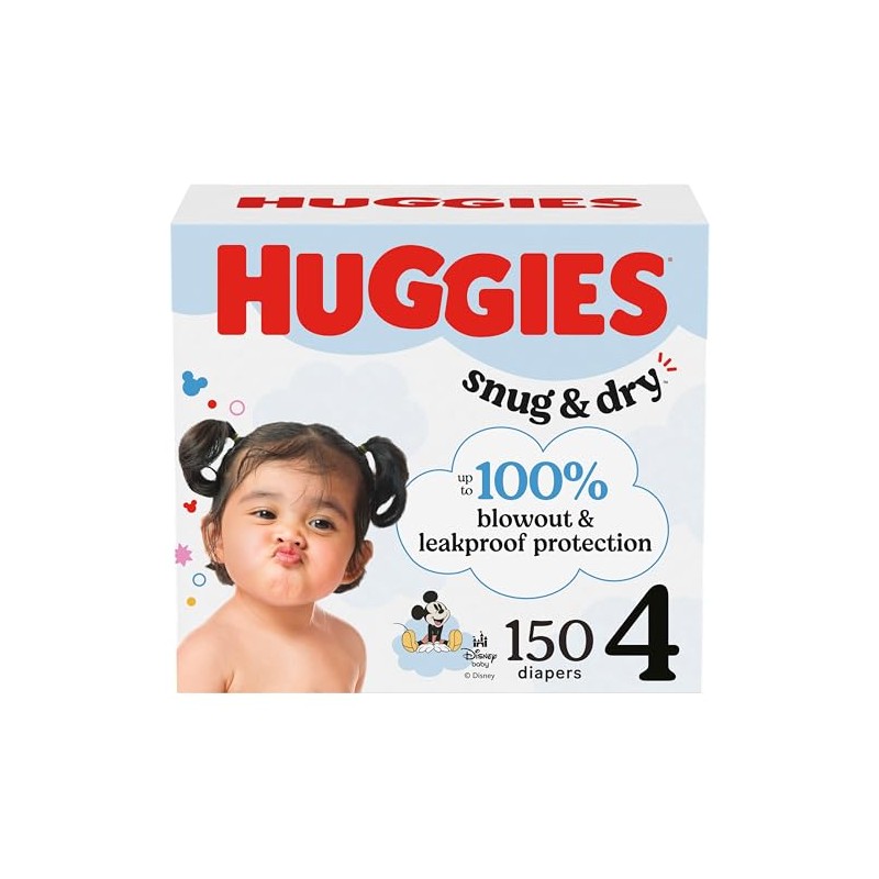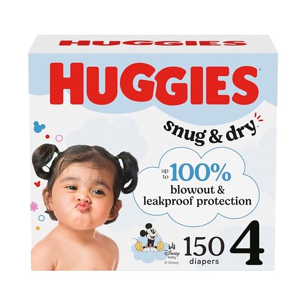 Huggies Size 4 Diapers, Snug & Dry Baby Diapers, Size 4 (22-37 lbs), 150 Count, Packaging May Vary