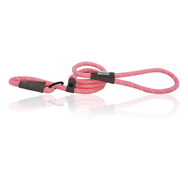 HugglePets Reflective Rope Slip Lead for Dogs - Pink (150cm) High Visibility Weather Resistant Training Lead for Dogs with Strong Inner Core and Welded Ring.