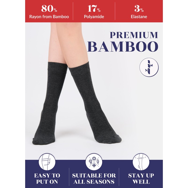 - 🧦SUPER SOFT, BREATHABLE & COMFORTABLE DESIGN: Thanks to bamboo, these thin ladies' dress socks are extremely soft, breathable and have a cooling effect. They are elastic and have a great stretch. Their improved cuffs hold socks comfortably in place. Reinforced toes and heels make them extremely durable. Our business crew women's dress socks have comfort seam toe that do not irritate your feet.