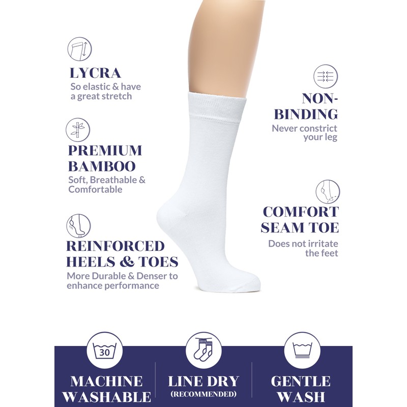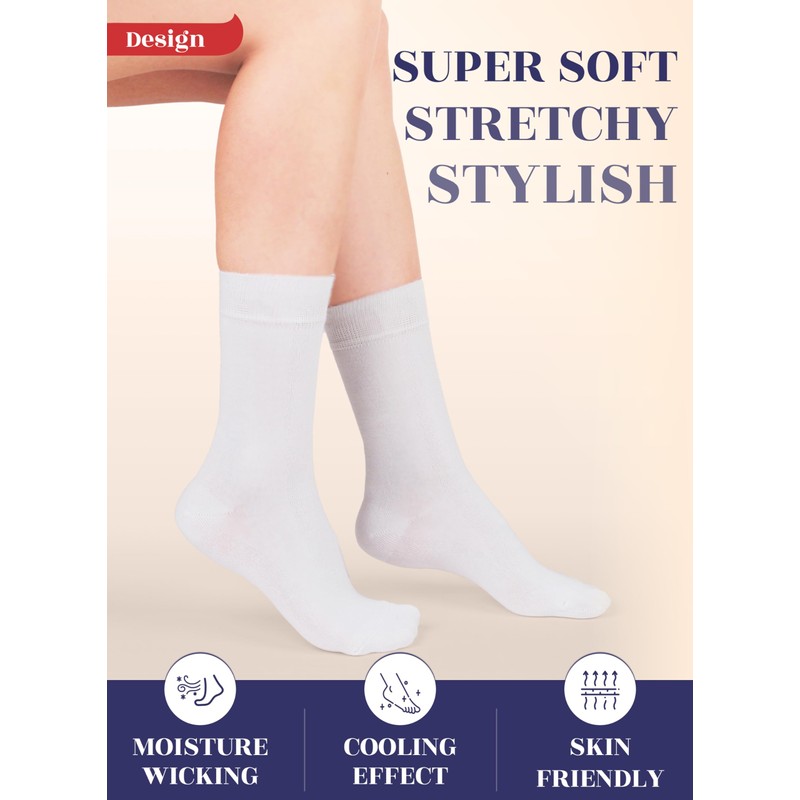 - 🧦SUPER SOFT, BREATHABLE & COMFORTABLE DESIGN: Thanks to rayon, these thin ladies' dress socks are extremely soft, breathable and have a cooling effect. They are elastic and have a great stretch. Their improved cuffs hold socks comfortably in place. Reinforced toes and heels make them extremely durable. Our business crew women's dress socks have comfort seam toe that do not irritate your feet.