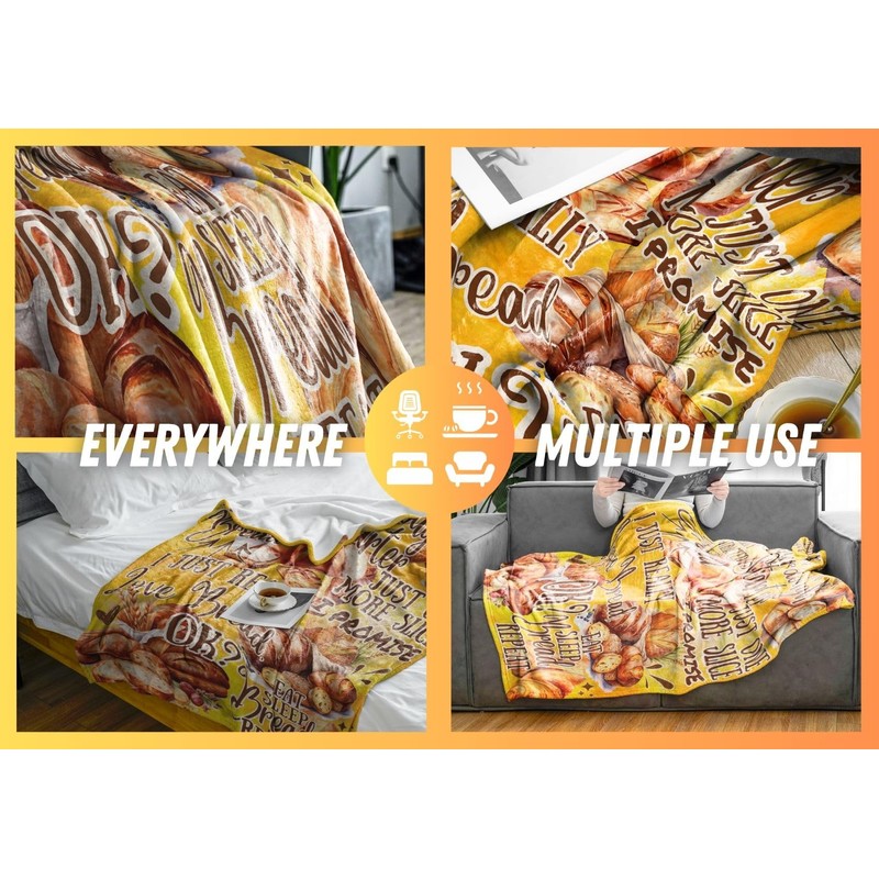 Huglanket Bread Bakery Gifts Blanket, Bed Flannel Plush Throw, for Bread Lover, Women, Female (50"x 65")