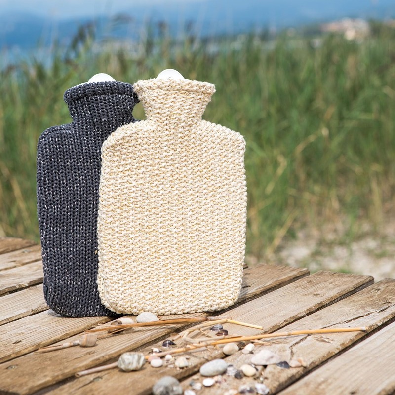 Hugo Frosch Classic Hot Water Bottle 1.8 L with Knitted Cover Lurex Anthracite