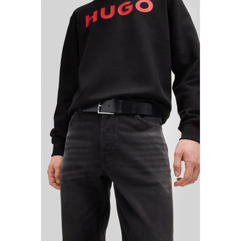 HUGO Giaspo Sz40 Men's Leather Belt with Embossed Logo on the Loop, Black 1