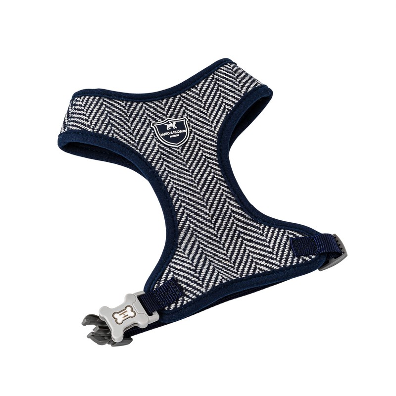 HUGO & HUDSON Tweed Dog Harness No Pull Adjustable Rear Buckle Vest, Navy Herringbone, M