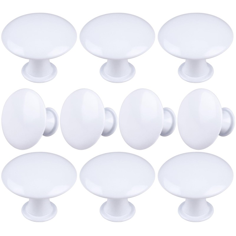 HUGOLEM 10 Pack White Round Varnish White Kitchen Cabinet Knobs Cupboard Door Knobs Drawer Handle Pulls Dresser Knobs with 10 Pcs Screws for Bathroom Drawer Door Hardware