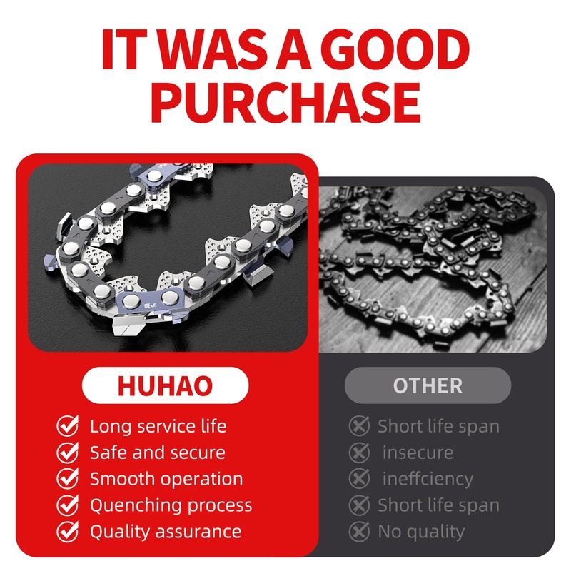 1.This chainsaw chains is made of fine quality alloy material, it is easy to install and remove, and has a long service time.