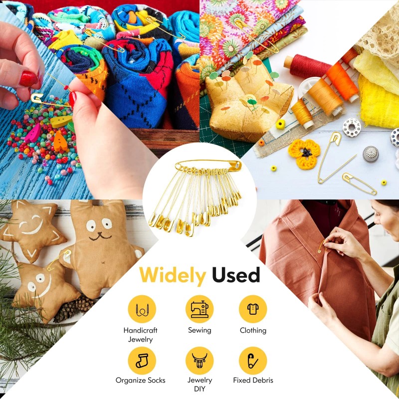 Safety Pins Heavy Duty: Safety pins can easily through into the fabric, do not cause damage or large holes. When locked, the tip off the pin is covered by a safety clasp to protect your fingers from against any unwanted accidents. It is the best partner for designers and tailors.