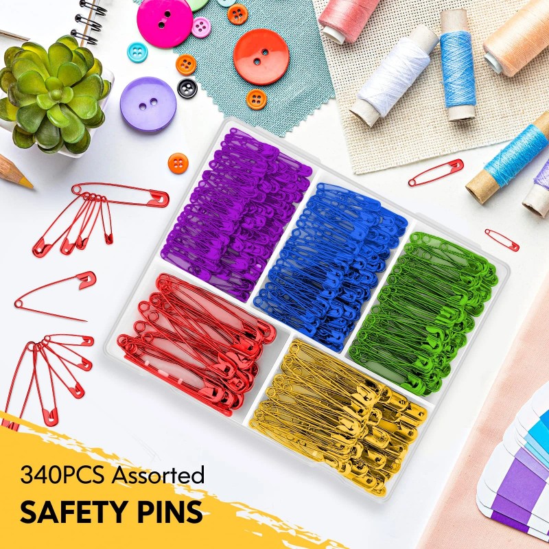 Package Includes: You will get a storage box and 340 PCS well-arranged safety pins. The storage box separates 5 sizes and colors of safety pins, which provides great convenience for quick search. If you don't satisfied or have any other questions about it, please feel free to contact.