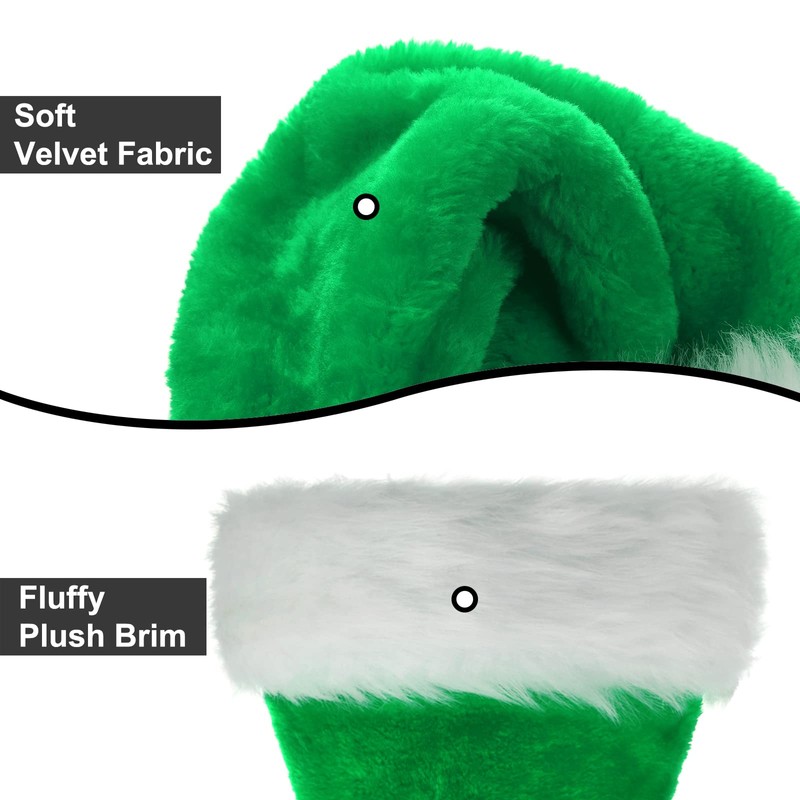 - PREMIUM WORKMANSHIP & Material: Handmade with premium plush.Red Velvet fabric and peluche brim make this Santa Hat soft and good touch feeling.Hand washable,not allergic and Eco-friendly.You and your family will love it.