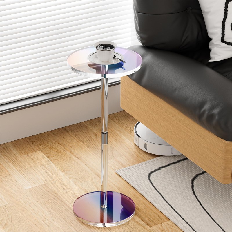 HuiDao Acrylic Side Table, Iridescent Drink Table for Small Spaces, 10" L x 10" W x 21.3" H, Round End Table for Living Room, Bedroom, Office, Easy Assembly