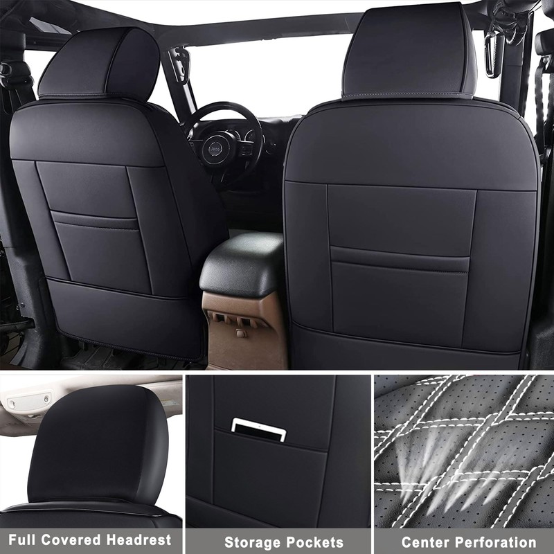 - ►【Breathable Materials】Wrangler seat covers made of durable, breathable, wear-resistant and waterproof faux leather, padded with sponge and cotton to make it feels softer and more comfortable. These automotive car seat cushion cover could protect the seat from dirt, dust, pet hairs and being scratched. Easy cleaned by wiping it with a soft wet towel