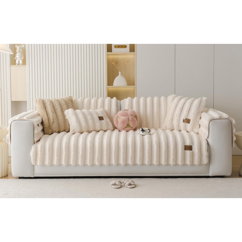 Huierxun Fuzzy Rabbit Plush Sofa Cover Thick Soft Fur Sectional Couch Cover Furry Fluffy Cushion Cover Non-Slip Sofa Slipcovers Vertical Stripe Furniture Protector for Dogs Cats(Cream,36"x36")