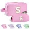 Huifen 2pcs Personalized Initial Makeup Bag A-Z, Travel Toiletry Bag Cute Makeup Pouch Cosmetic Bags Preppy Make Up Bag Large Makeup Organizer Birthday Christmas Gifts for Women Girls (Rose Red, S)