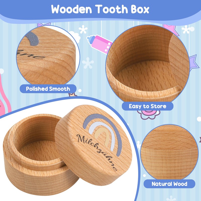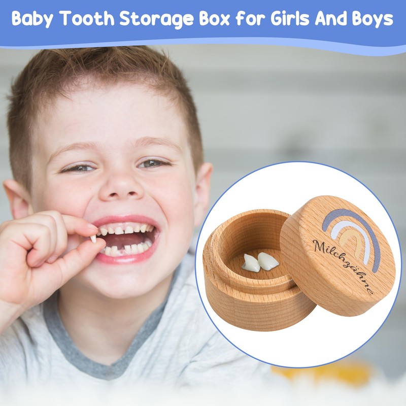 - 🌟 CARTOONS AND CUTE, KIDS LOVE IT: Cute rainbow patterns and colour designs are loved by babies. Each wooden tooth box is full of children's fun, which can make your baby happily store the teething.