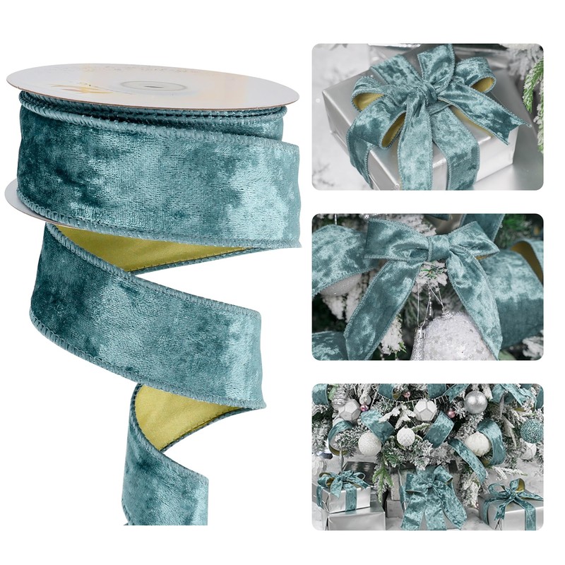 - đź’™ Color-Steel Blue. This wired ribbon crafted from smooth and luxury steel blue velvet texture with gold backing, wired edges with good stitching. It can be used to wrap around your Christmas tree or staircase ballard or as an elegant finishing touch to your Christmas gift wrapping.