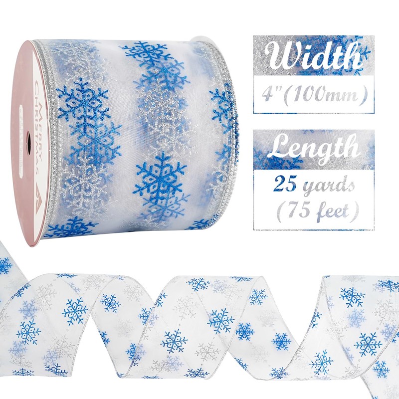 - Size and Package: Snowflake ribbon measures 4 inch wide and 25yards (75 feet ) continuous long each roll, ideal for crafting tree top bows, decorating Christmas trees and adding a touch of winter wonder to your Christmas holiday projects