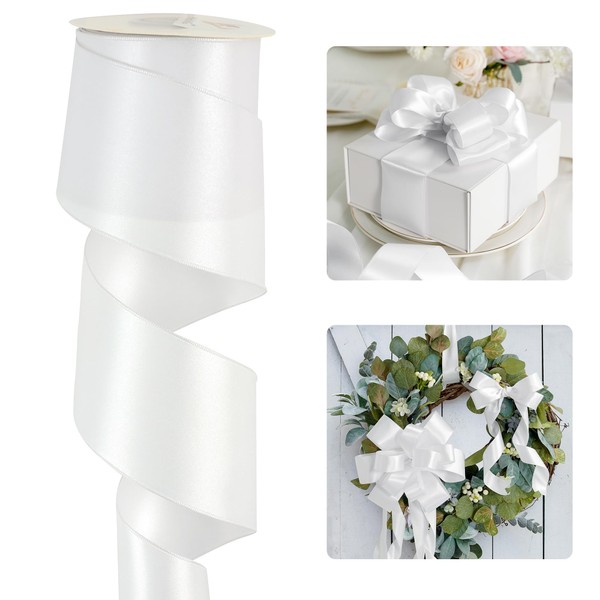 - Color: White satin wired ribbon crafted from glossy and shiny elegant surface satin texture with the same double-faced backing, wired edges, great for making bows for your wreath, centerpiece, door hanger, lantern, garland, gift wrap and other