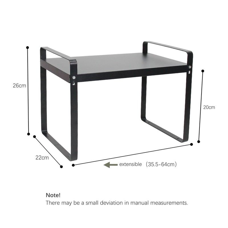 HUIJIN 36-64cm Adjustable & Expandable Kitchen Countertop Organizer, Heavy Duty Steel Layered Shelf for Cabinet, Pantry, Bathroom – Storage Rack for Pots, Spices, Cosmetics, Books [W22/H26CM