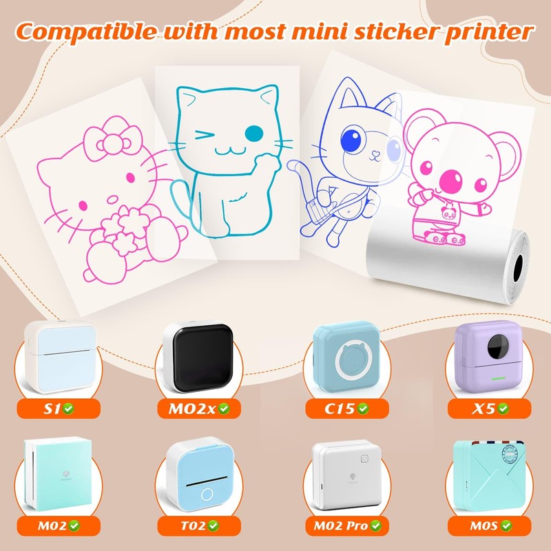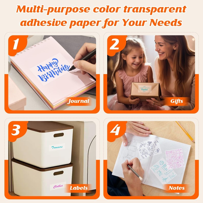 - [Versatile Application Scenarios]: In DIY handmade projects, the sticker paper serves as a creative canvas, enabling you to make unique gift labels and decorative stickers. When recording in a handbook, it adds color and fun to the page, making notes more vivid. In study and work, it's perfect for organizing materials with receipt paper, marking key points with printer paper, and improving efficiency. You can also attach the printing paper to mobile phones, backpacks, and other items to showcase personal style, adding more color and creativity to life.