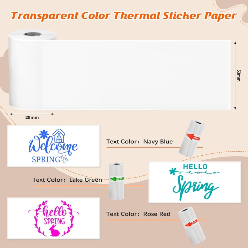 - [3 Rolls Color Text Clear Stickers]: Using lake green, rose red, and navy blue text with transparent background paper,this printable sticker paper injects visual layering into the printed content. Distinct from the printing color of ordinary sticker paper, the glossy sticker paper ensures a more prominent printing effect. Whether you're decorating a notebook, marking items, or engaging in DIY creative design with your mini sticker printer,the transparent sticker paper can make your logo stand out and create a personalized visual effect.