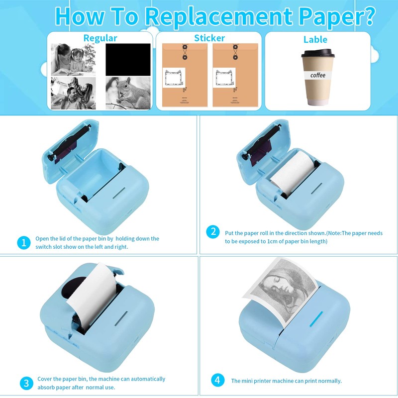 - 10 Rolls Thermal Paper Our Bluetooth pocket printer comes with 5 rolls of self-adhesive thermal paper and 5 rolls of thermal paper to meet your different needs. Great paper is able to print clear and friction-resistant graphics, keeping your work and life refined and organized. Gives you a whole new experience in printing images and text.