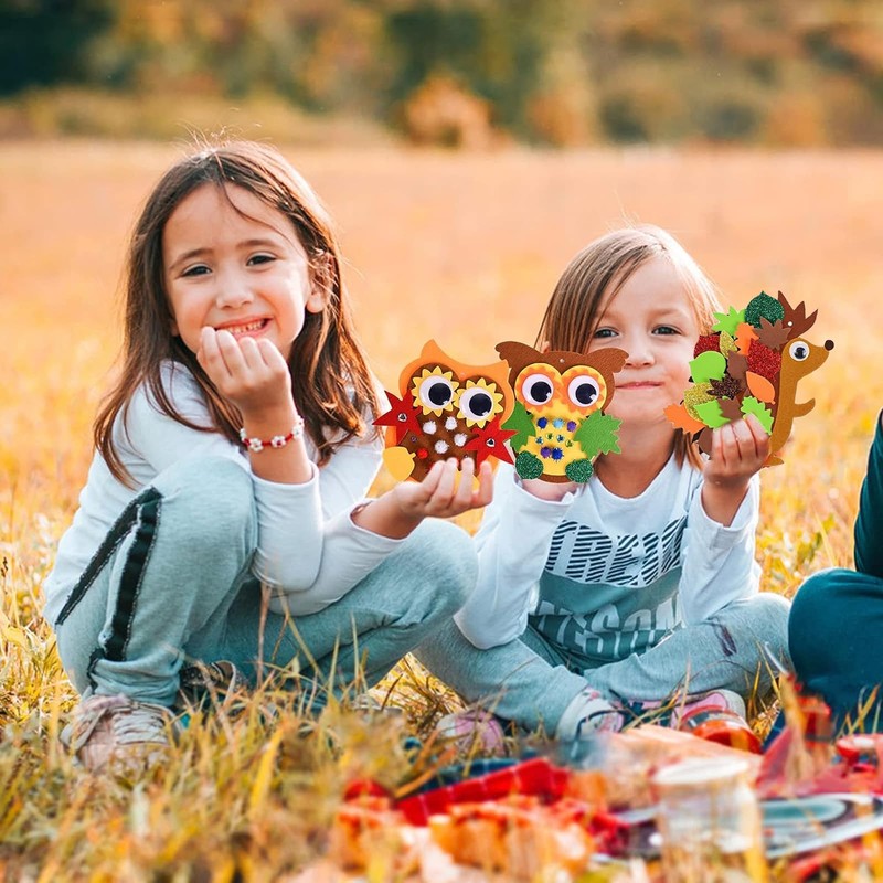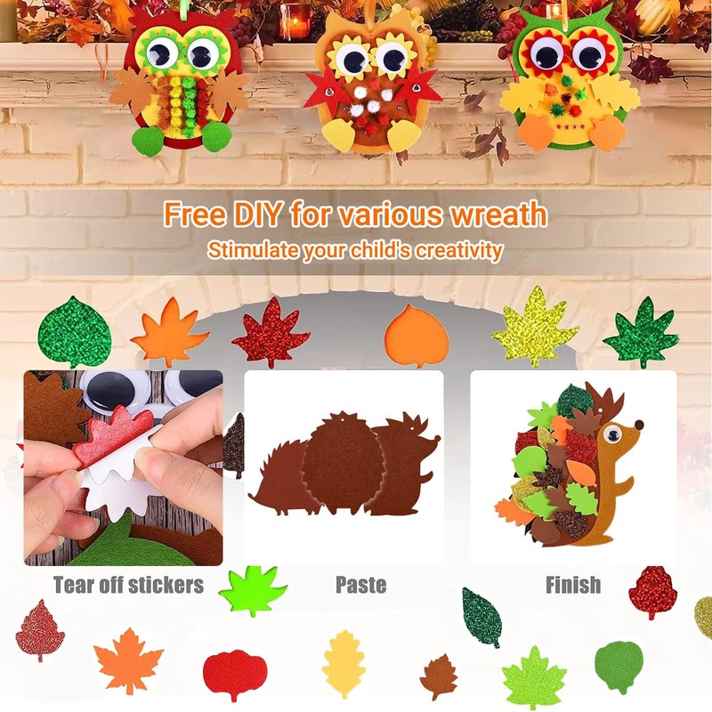 - Craft set for children: craft set contains 3 felt owls, 3 hedgehog bodies, 3 felt autumn wreaths, felt decoration, diamond stickers, 8 ribbons. You can stack stickers to create a surprise owl and a hedgehog. Children can let their creativity and practical skills run wild, can enjoy the fun of DIY