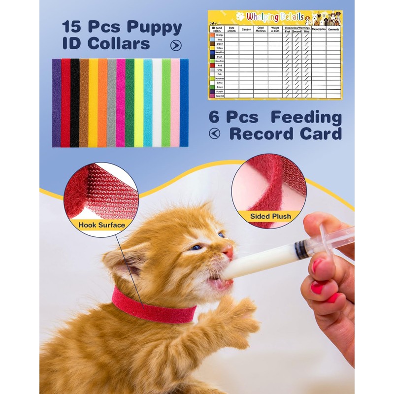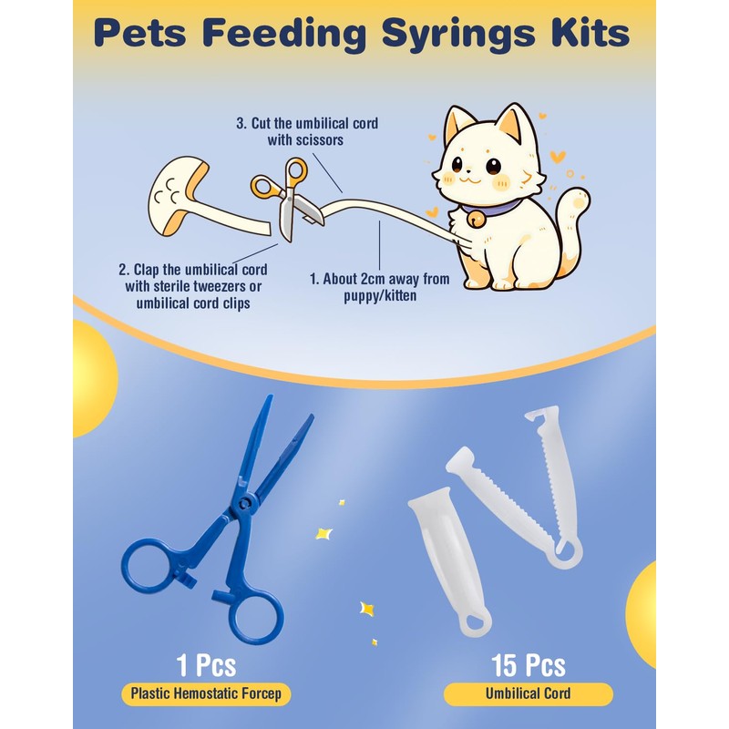 - [๐๐จ๐ฆ๐ฉ๐ฅ๐๐ญ๐ ๐๐ก๐๐ฅ๐ฉ๐ข๐ง๐ ๐๐ข๐ญ] Our all-in-one whelping kit includes all the necessary supplies for a safe and comfortable birthing experience for your furry friend. Including 15 puppy whelping collars, 15 cord clamps, 6 record keeping charts, 4 Puppy feeding tubes, 1 digital thermometer, 1 kitten baby bottle, 1 pet pill syringe, 1 plastic scissor, 1 pet stethoscope, 1 bulb aspirator, 2 pairs blue gloves, 2 Cups, 1 Box, 1 storage bag.
