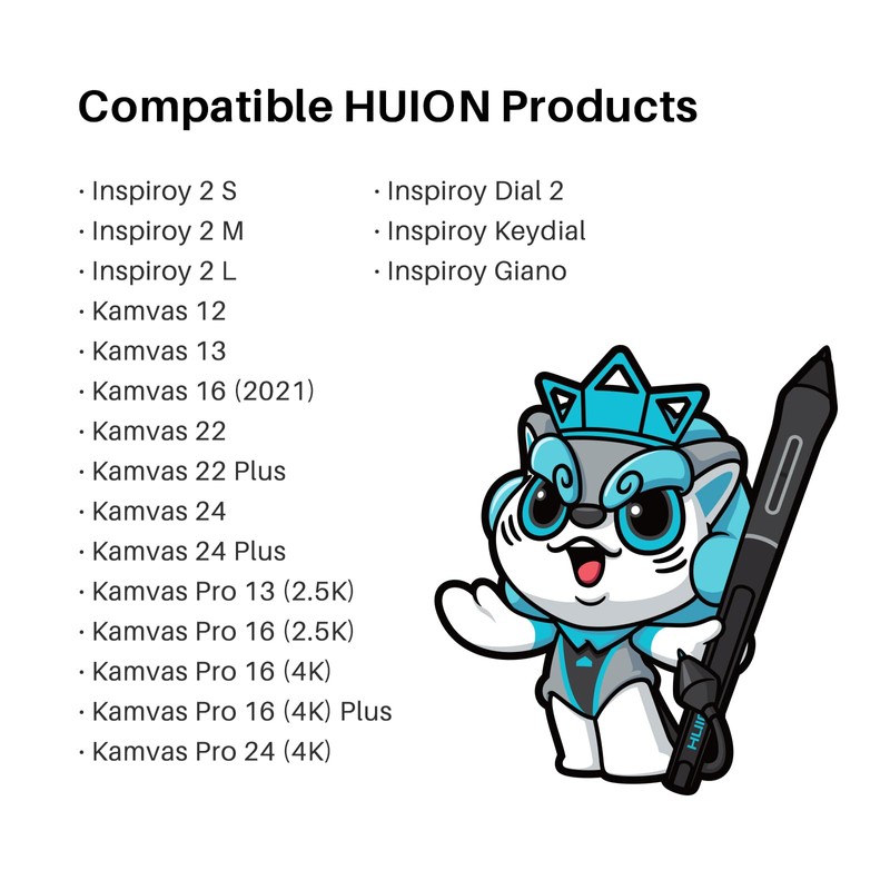 - [Compatible models] Only COMPATIBLE with Inspiroy 2, Kamvas 12, Kamvas 13, Kamvas 16(2021), kamvas 22, kamvas 22 Plus, Kamvas 24, Kamvas 24 Plus. Kamvas Pro 13 (2.5K),Kamvas Pro 16 (2.5K), Kamvas Pro 16 (4K), Kamvas Pro 16 (4K) Plus,Kamvas Pro 24 (4K), Inspiroy Dial 2/Keydial/Giano; NOT COMPATIBLE with iPad, other Graphics Tablet.