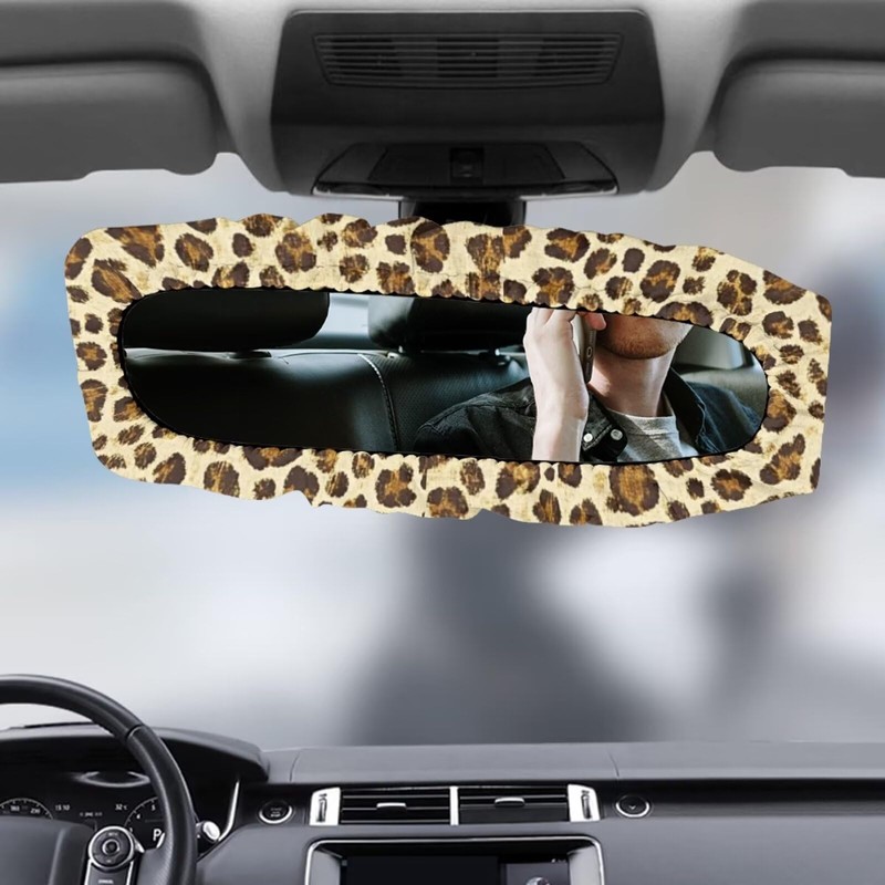 HUISEFOR Leopard Print Rearview Mirror Cover for Women Yellow Vehicle Rearview Mirror Covers Dustproof & Scratch Resistant Car Interior Accessories Universal for Vehicle Sedan Truck 2025