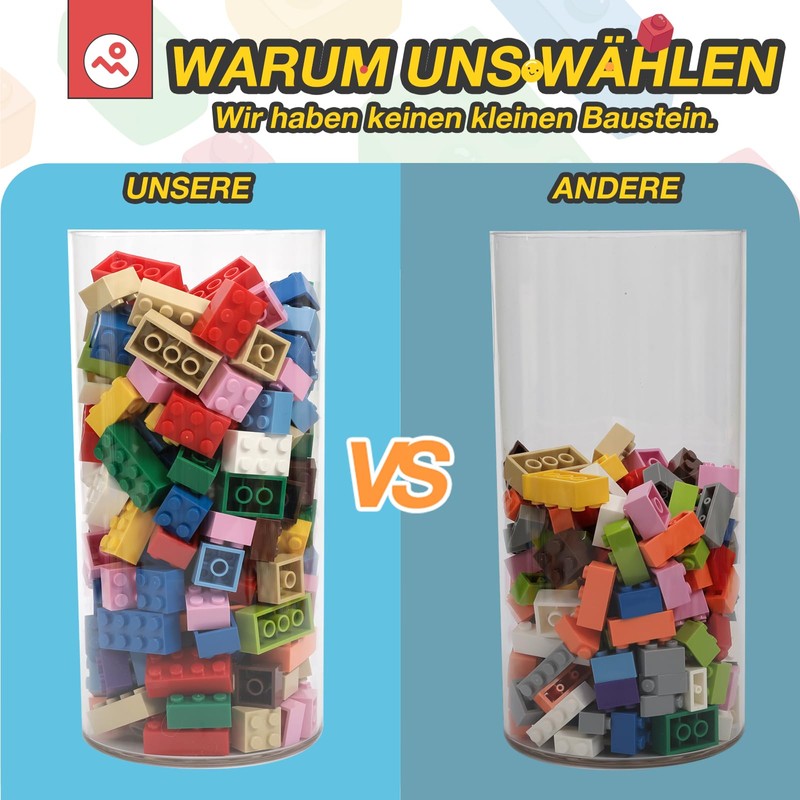 - Compatible with all major brands: 600 pieces high-quality building blocks in different colours and classic sizes, do not contain 1 x 1 brick or small pieces, only 600 pieces multi-coloured bricks for construction, compatible and guaranteed to fit all major brand building block sets.