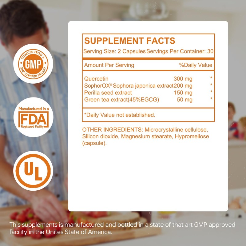 - Lung Support Supplement with Daily Immune Support: Quercetin, sophora japonica extract, perilla seed extract and green tea extract are rich in antioxidants and help scavenge free radicals, supporting both immune and lung health.
