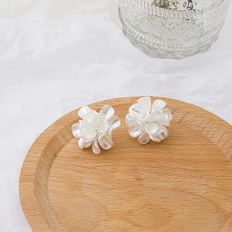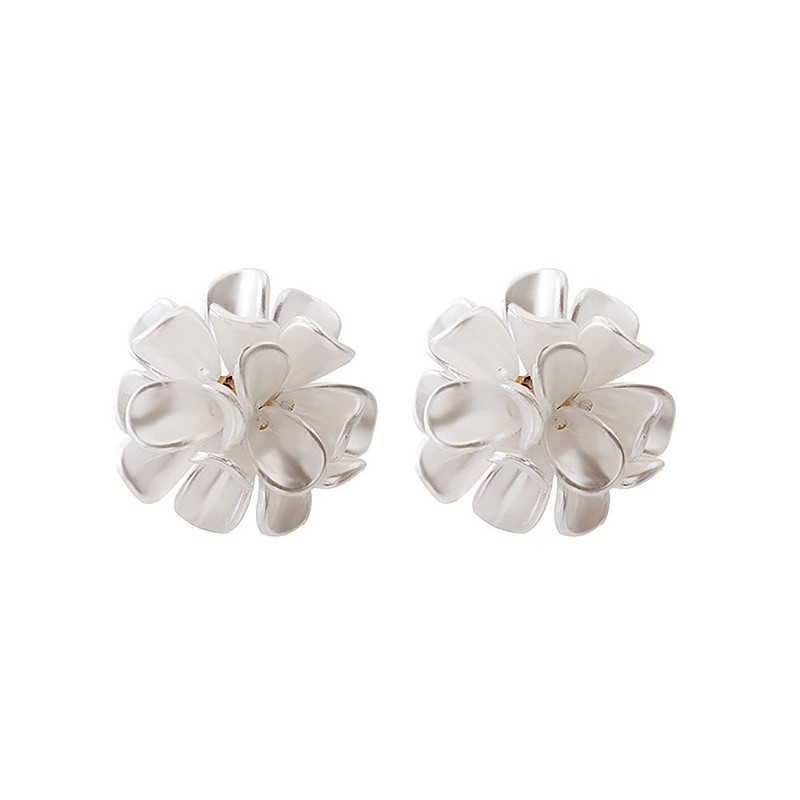 HUJUON Acrylic Scrub Resin Flower Stud Earring for Women. Bohemia White Flower Floral Petal Statement Earring Jewelry (Pearl White)