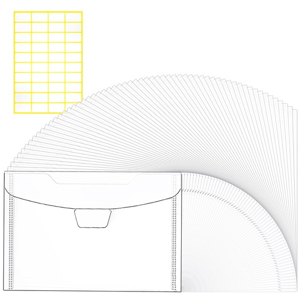 Hukado Clear Plastic Envelopes 60 Pcs 9''x7'' for Cash, Photo, Paper Document...