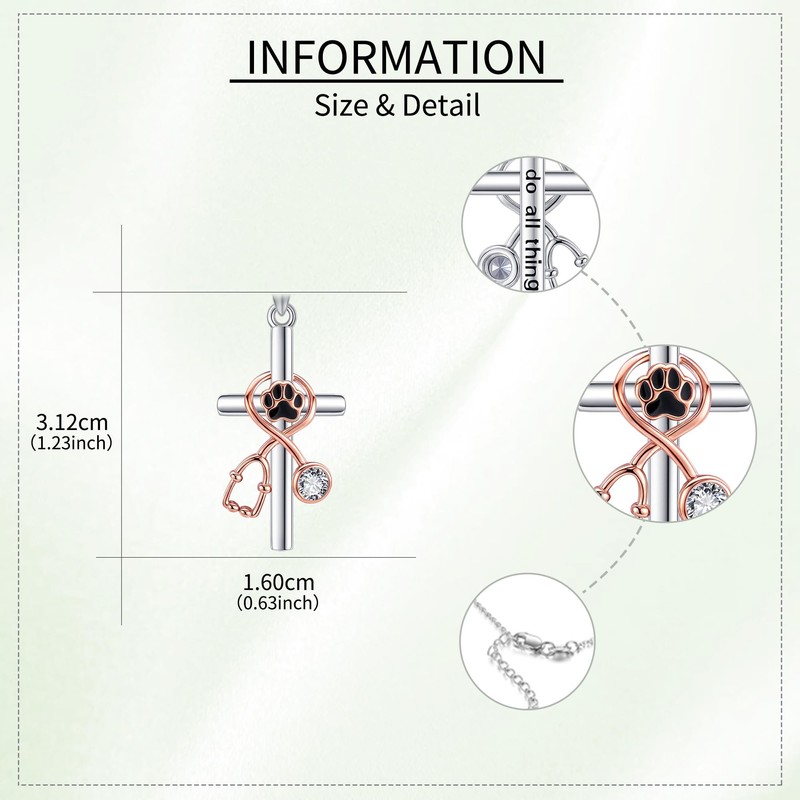 - For Those Who Speak Animal: This dainty stethoscope-paw necklace is crafted just for veterinarians. Stethoscope cross with paw. Back engraved with"I can do all things“. Wear your veterinary pride daily. Because your stethoscope listens to heartbeats without words. This also could be an appreciation or support gift for your veterinarian.