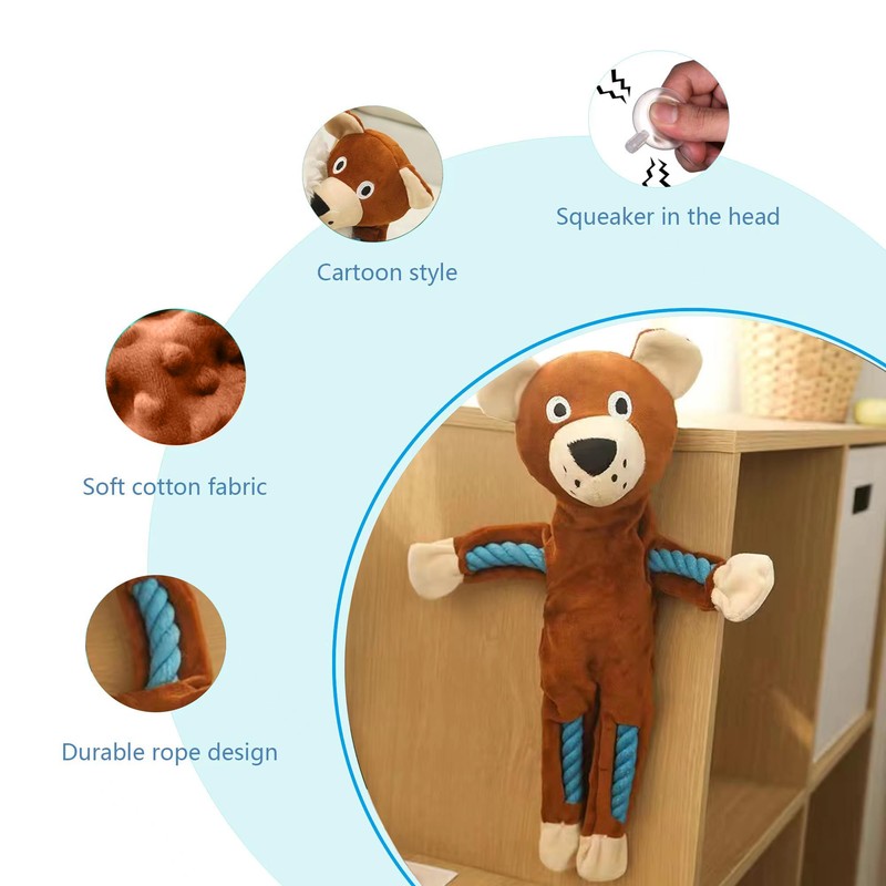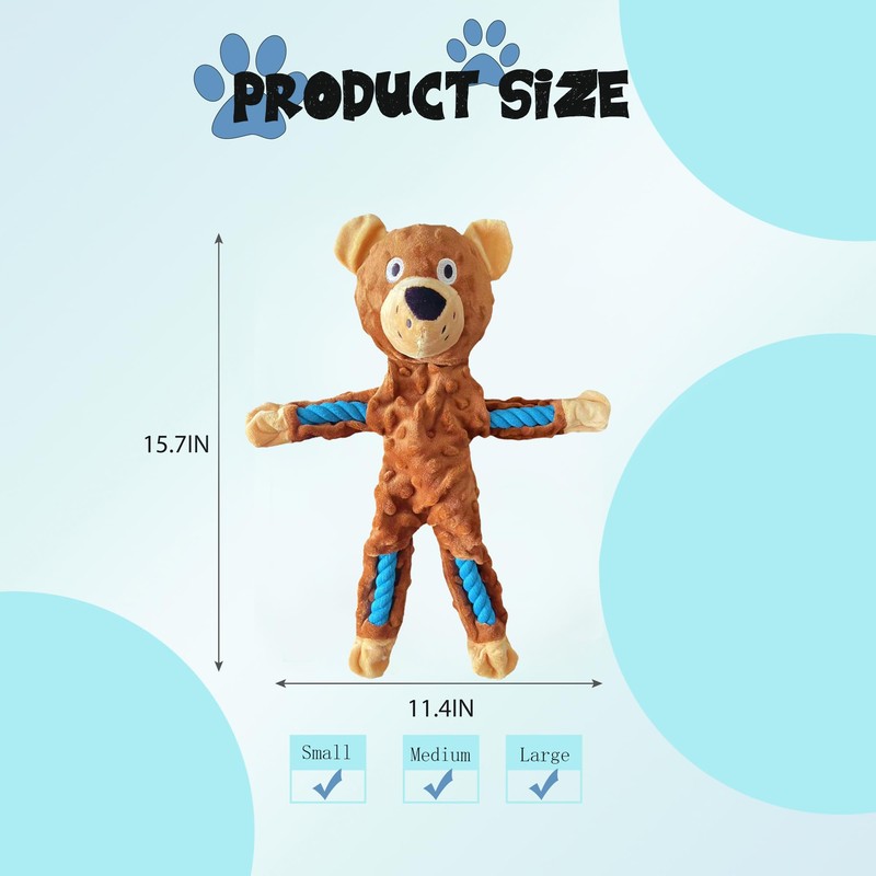 HUKNFC Large Interactive Dog Toys,Rope Dog Toys,Plush Squeaky Dog Toys,Chew Dog Toy,Plush No Stuffing Dog Toy,15.7IN (Brown Bear)