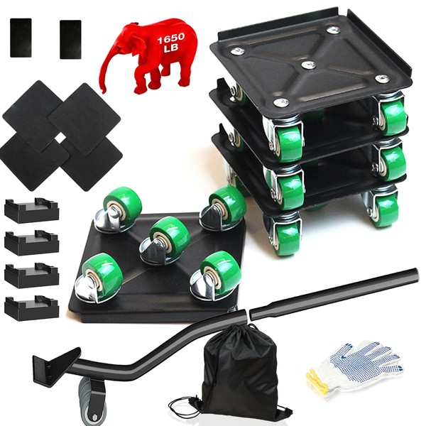 - 🏆𝗛𝗜𝗚𝗛 𝗤𝗨𝗔𝗟𝗜𝗧𝗬 𝗙𝗨𝗥𝗡𝗜𝗧𝗨𝗥𝗘 𝗗𝗢𝗟𝗟𝗬: Our furniture movers with wheels are made of thickened carbon steel with reinforced steel base, not easy to deform and have stronger load-bearing capacity (Support up to 1650 LBS). The extended carbon steel pry bar is labor-saving and firm. Perfect design of furniture movers sliders allows even the heaviest furniture to be moved easily