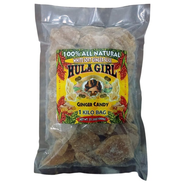 Hula Girl Crystalized Soft Ginger Candy (White Slice 35.2oz / 2.2lb (1kg bag)