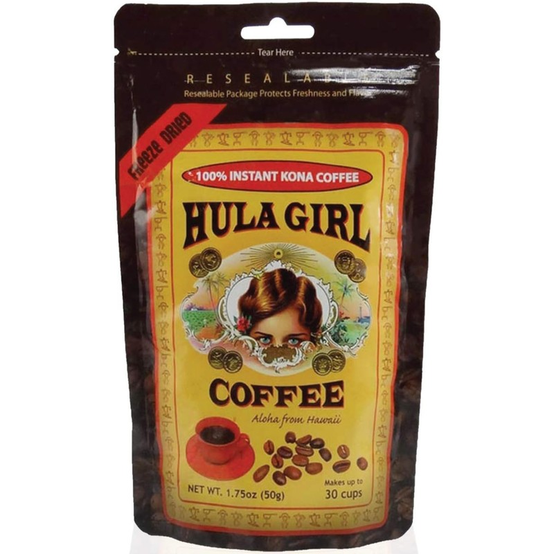 Hula Girl 100% Hawaiian Kona Freeze Dried Instant Coffee (Pack of 1 Bag 1.75Oz,0.11lb,50gram)