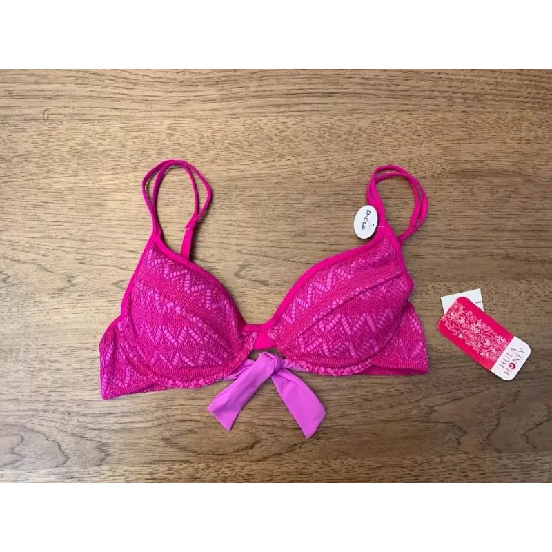 Hula Honey Pink Crochet Lace LARGE D Underwire Adjustable Bikini Swim Top NWT