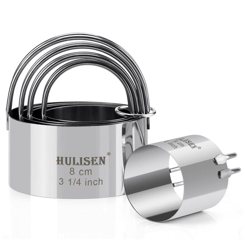 HULISEN Biscuit Cutter Set (5 Pieces/Set), Round Cookies Cutter with Handle, Professional Baking Dough Tools, Gift Package