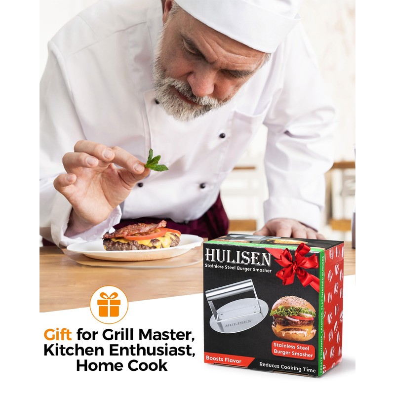 - A Great Addition to Anyone’s Kitchen: Perfect for BBQ tailgate parties, family gatherings and homemade meals. Packaged in professional brand gift packaging, the HULISEN burger press is a fantastic gift for burger lovers, grill enthusiasts, cooking aficionados, and home chefs. It’s perfect for holidays, special occasions, Father’s Day, or Valentine’s Day, adding joy and convenience to anyone’s kitchen.