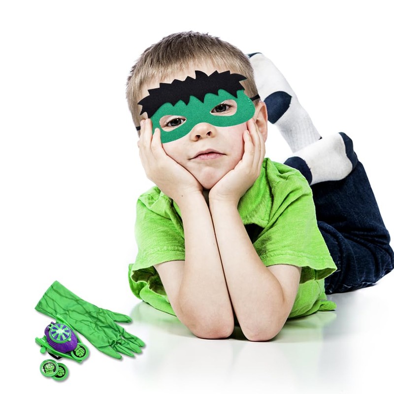 Hullk Children's Costume, Superhero Costume, Mask, Launcher Glove, Cosplay Costume for Children, Launcher Glove Toy, Children's Theme Party Dress Up Costume Set, Masquerade Costume for Children