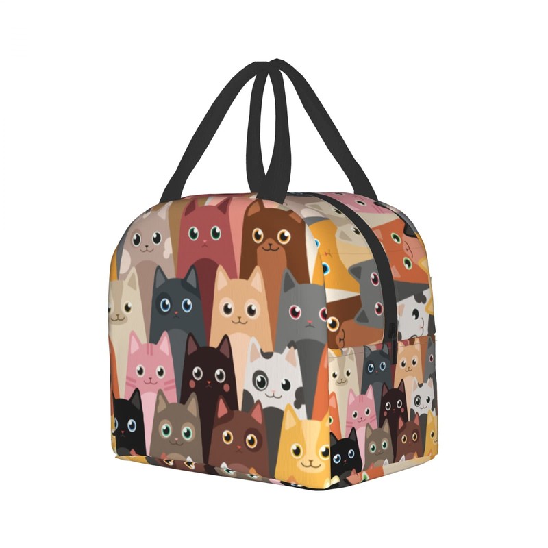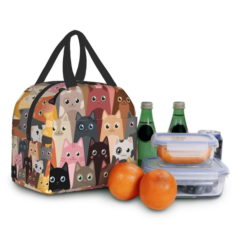 Hulnulnu Cute Cats Lunch Bag, Cartoon Kitties Insulated Tote Reusable Washable Thermal Cooler Picnic Food Carrier Travel Work School for Women Men Kids